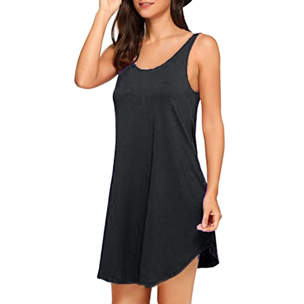 Fashion Women Casual Dress Sleeveless O Neck Loose Dress Evening Party Dress
