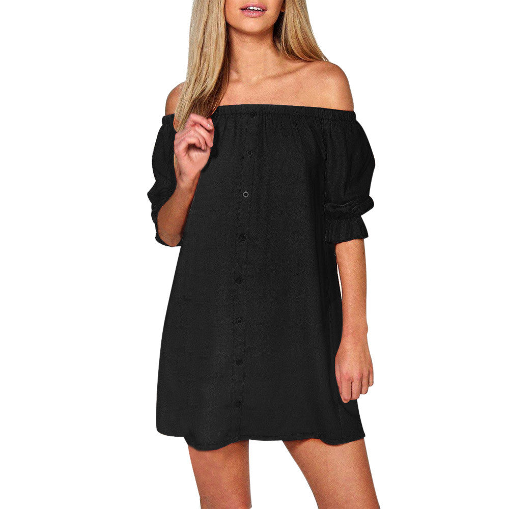 1.It is made of high quality materials,durable enought for your daily wearing Womens Ladies Off Shoulder Button Mini Dress Evening Shirt Dress